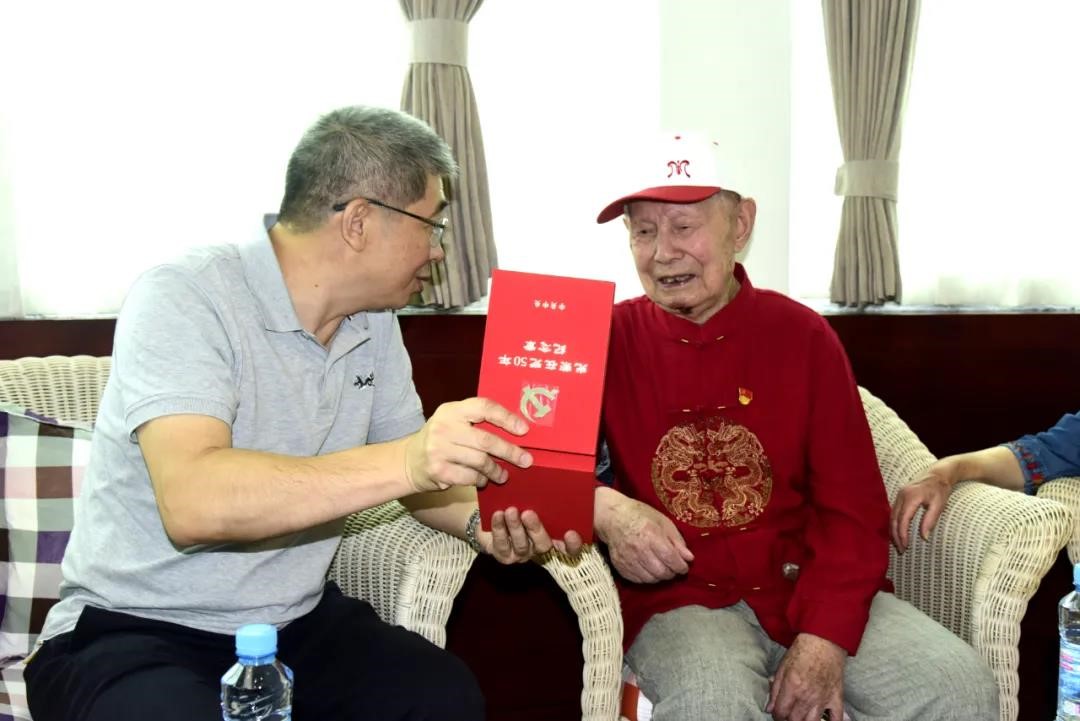 为庆祝中国共产党成立100周年,中共中央首次颁发“光荣在党50年”纪念章,江投集团共有34位老党员获颁纪念章。6月3日上午,江投集团党委书记、董事长揭小健来到williamhill英国官网集团,为抗战时期参加革命工作的离休干部贺有富送上“光荣在党50年”纪念章,向他致以崇高敬意和诚挚问候,并送上百岁生日祝福,感谢贺老为革命事业、为企业发展作出了积极贡献。williamhill英国官网集团党委书记、董事长邓福保,党委副书记、总经理蔡宝家陪同。